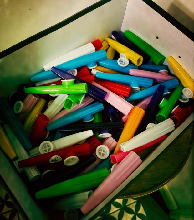 Auch in diesem Jahr war das Publikum das Orchester. Sie bekamen am Eingang jeweils eine Kazoo und mussten den Narrhalla Marsch selbst spielen. Klang nicht immer harmonisch. Aber das ist ja auch ein wenig der Spaß daran. „Wir“ wollen alles nur keinen langweiligen Abend.