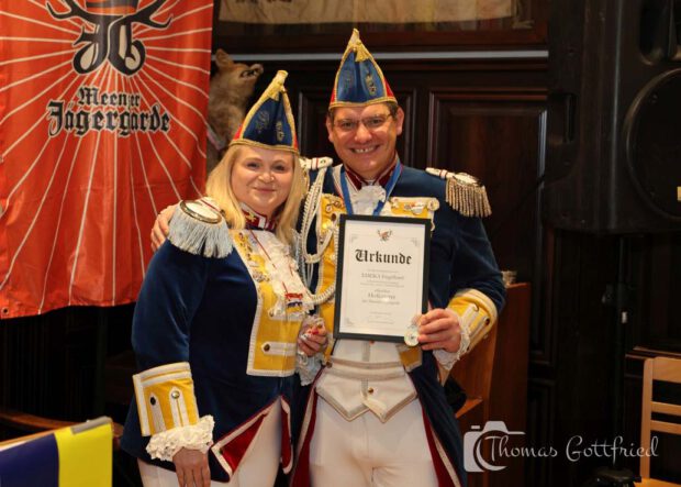 Ganz ohne Hilfe von weiteren Helfern wäre es unmöglich so einen Ordensempfang zu realisieren. Und deshalb haben „wir“ „uns“ diesmal besonders bei Ralf Engelhard und seiner Dani bedankt. Ralf ist der Chef von EDEKA Engelhard in Finthen und haben jetzt schon mehrfach nicht nur die Zutaten für „unser“ Buffet zu ihrem Einkaufspreis geliefert – nein, die beiden stellen sich auch in die Küche und schmieren zusammen mit Siggi und Jo die Brötchen, portionieren den Spundekäs etc. Deshalb haben „wir“ Dani und Ralf zu „unseren“ Hofcaterern ernannt.