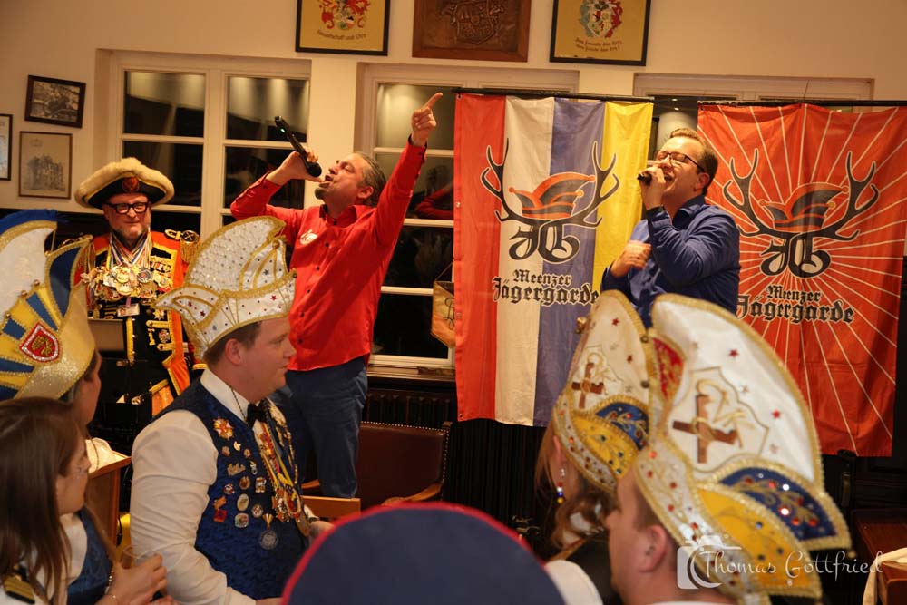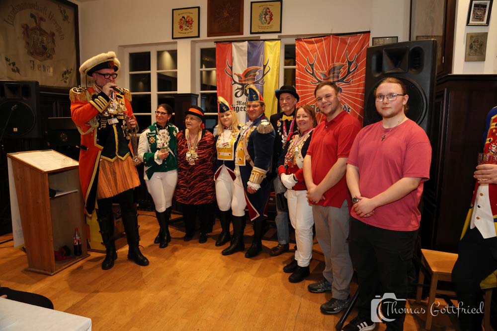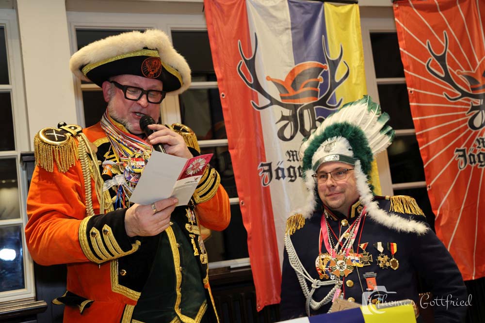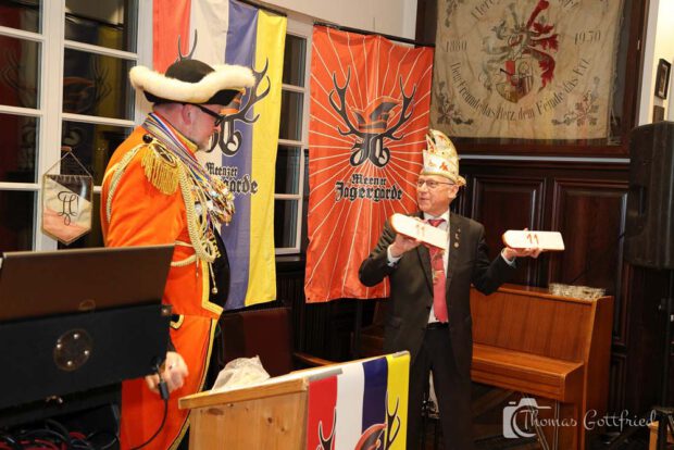 Natürlich gab es die üblichen Tagesordnungspunkte für einen Ordensempfang. So wurde Bernd Frank für 12 Jahre Mitgliedschaft mit einem Jägermeister geehrt.